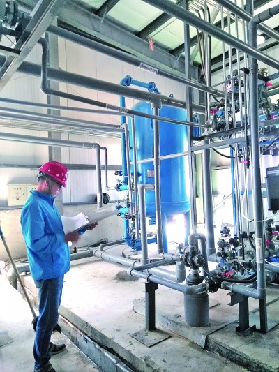 二〇一七年夏,趙有璟于一里坪鹽湖記錄設(shè)備試運行參數(shù)。光明圖片