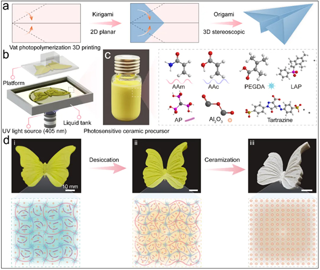 光固化3D打印水凝膠柔性前驅(qū)體輔助制造復雜陶瓷結(jié)構(gòu)的方案。