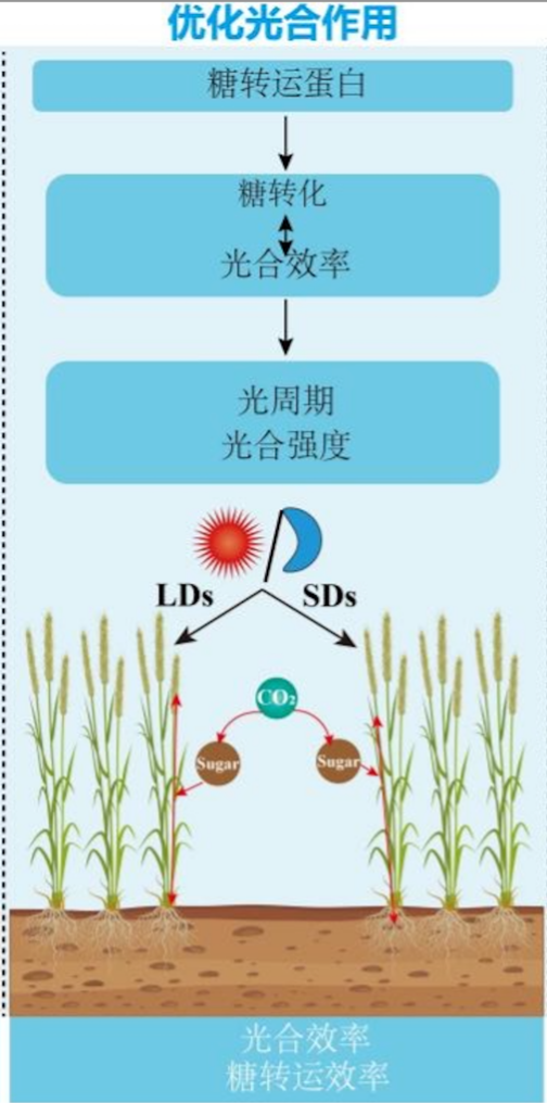 其次,光合作用是影響植物生長(zhǎng)發(fā)育的重要因素。光合作用是糖轉(zhuǎn)運(yùn)蛋白的“任務(wù)發(fā)布者”,其產(chǎn)生的能量需求信息就像下達(dá)的指令,糖轉(zhuǎn)運(yùn)蛋白如同繁忙港口的智能裝卸設(shè)備,能夠迅速且精確地將“貨物”(糖分)卸載并轉(zhuǎn)運(yùn)至目的地,加速糖分的運(yùn)輸調(diào)配,以滿(mǎn)足植物生長(zhǎng)各環(huán)節(jié)的能量需求。通過(guò)建立光合作用與糖轉(zhuǎn)運(yùn)蛋白之間的動(dòng)態(tài)調(diào)控模型,優(yōu)化了植物對(duì)光能的利用及糖分的分配,這就需要“招募”更多的糖轉(zhuǎn)運(yùn)蛋白快遞員投入工作,加快糖類(lèi)的運(yùn)輸速度,讓其光合作用的能量轉(zhuǎn)化成果快速在體內(nèi)流通。
