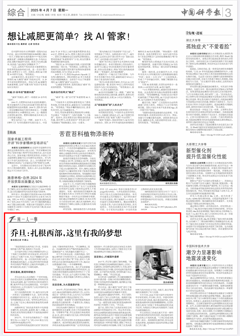 【中國科學(xué)報】喬旦:扎根西部,這里有我的夢想