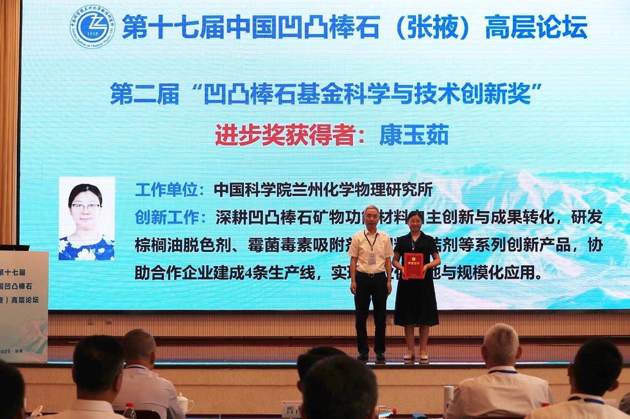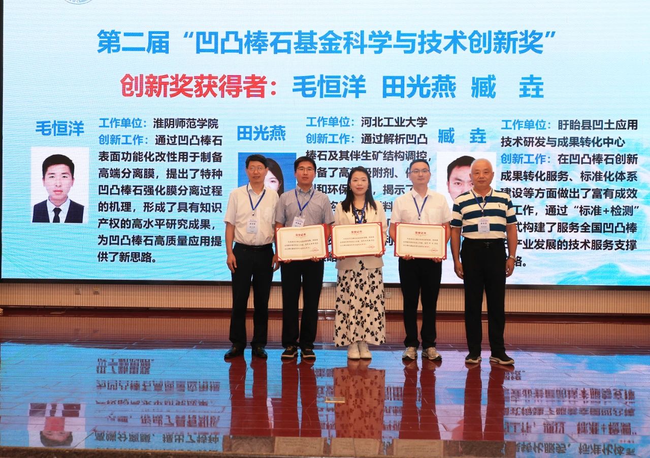 開幕式上,頒發(fā)了第二屆凹凸棒石基金科學與技術(shù)創(chuàng)新獎,以激勵更多優(yōu)秀人才加入凹凸棒石研究隊伍。蘭州化物所康玉茹高級工程師榮獲進步獎,河北工業(yè)大學田光燕副教授、淮陰師范學院毛恒洋副教授和盱眙縣凹土應(yīng)用技術(shù)研發(fā)與成果轉(zhuǎn)化中心臧垚工程師獲得創(chuàng)新獎。