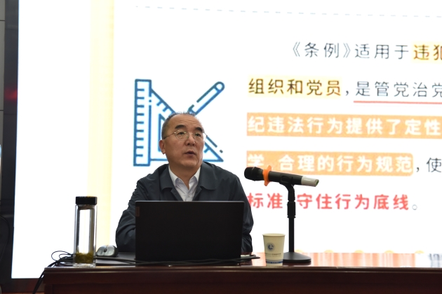 為豐富黨紀學習教育形式,全面營造學紀、知紀、明紀、守紀的良好氛圍,示范帶動全所黨員、干部深入學習貫徹新修訂的《中國共產黨紀律處分條例》(以下簡稱《條例》),5月14日上午,中國科學院蘭州化學物理研究所舉辦了黨紀學習教育讀書班輔導報告會,邀請甘肅省紀委監(jiān)委第八監(jiān)督檢查室主任、二級高級監(jiān)察官陳中偉作了專題輔導報告。