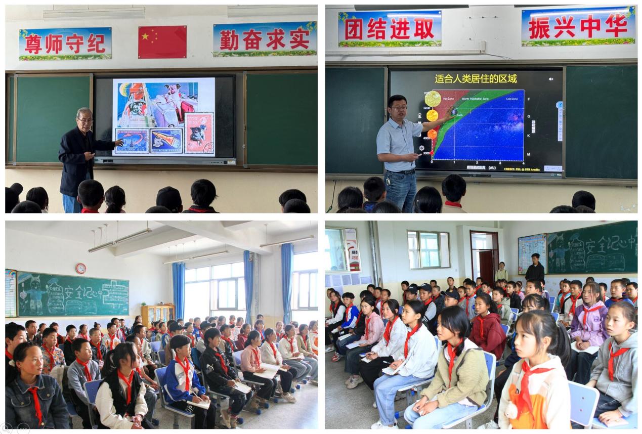 在王泉村鷺島小學(xué),侯明東研究員和侯素青研究員分別作了題為《宇宙在召喚-人類空間探索的故事》和《賞“星”悅目 暢想未來》的科普報(bào)告。兩位研究員生動(dòng)形象、通俗易懂的講述,引起了學(xué)生們的極大興趣,激發(fā)了孩子們對自然科學(xué)的濃厚熱情,同時(shí)報(bào)告人還結(jié)合個(gè)人經(jīng)歷,勉勵(lì)同學(xué)們立志成才、刻苦學(xué)習(xí)、通過自身的努力改變命運(yùn)、報(bào)效祖國、回報(bào)家鄉(xiāng)。報(bào)告結(jié)束后,近代物理所黨辦相關(guān)同志代表研究所為“我的科學(xué)夢”征文比賽中獲獎(jiǎng)的同學(xué)頒發(fā)了獎(jiǎng)狀,并由青促會(huì)小組向王泉村鷺島小學(xué)贈(zèng)送了一批體育用品,包括籃球、足球、乒乓球和羽毛球拍等,希望能夠豐富同學(xué)們的課外活動(dòng)資源。鷺島小學(xué)朱宏校長代表學(xué)校對近代物理所長期以來在科技幫扶和教育幫扶方面給予的支持表示衷心感謝,并向研究所贈(zèng)送了題為“情系鄉(xiāng)村教育、彰顯大愛無疆”的錦旗。