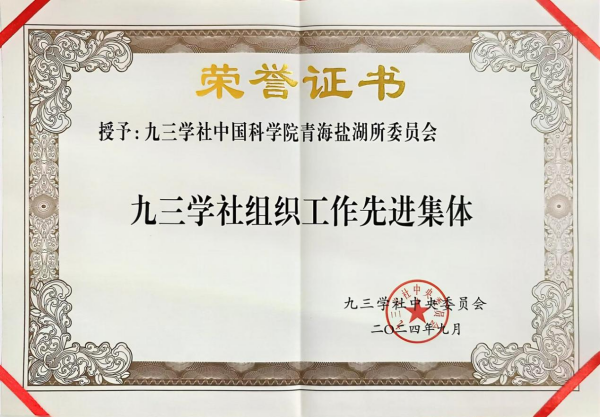 近期,經(jīng)九三學(xué)社第十五屆中央委員會(huì)第二十三、二十四次主席辦公會(huì)議研究決定,九三學(xué)社青海鹽湖所委員會(huì)榮獲2023至2024年九三學(xué)社組織工作先進(jìn)集體,也是青海省唯一入選該榮譽(yù)稱號(hào)的集體組織。