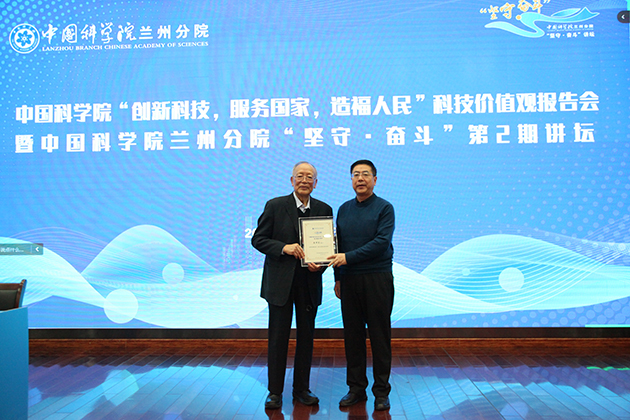 11月29日,中國(guó)科學(xué)院蘭州化學(xué)物理研究所承辦了中國(guó)科學(xué)院“創(chuàng)新科技、服務(wù)國(guó)家、造福人民”科技價(jià)值觀報(bào)告會(huì)暨中國(guó)科學(xué)院蘭州分院“堅(jiān)守·奮斗”第2期講壇。蘭州分院系統(tǒng)各單位領(lǐng)導(dǎo)班子成員、黨委委員、紀(jì)委委員、中層干部、黨支部書記、科研管理骨干、研究生代表等350余人參加報(bào)告會(huì)。報(bào)告會(huì)由蘭州化物所黨委書記王齊華主持?!?/span>