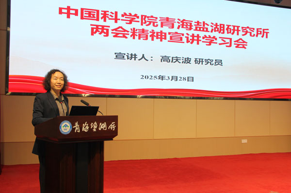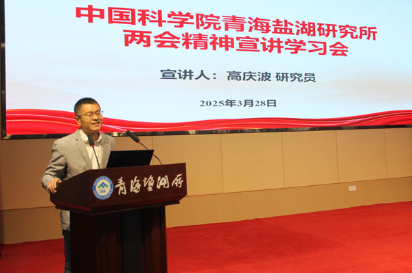 為深入學(xué)習(xí)貫徹2025年全國(guó)兩會(huì)精神,全面落實(shí)習(xí)近平總書(shū)記重要講話及政府工作報(bào)告核心要義,中國(guó)科學(xué)院青海鹽湖研究所于3月28日在學(xué)術(shù)報(bào)告廳舉辦貫徹落實(shí)2025年全國(guó)兩會(huì)精神主題宣講學(xué)習(xí)會(huì)。會(huì)議特邀全國(guó)政協(xié)委員、西北高原所研究員高慶波作主題宣講,會(huì)議由黨委副書(shū)記、副所長(zhǎng)王建萍主持,青海鹽湖所全體職工和研究生參加會(huì)議。