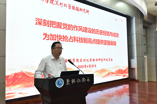 6月25日上午,中國(guó)科學(xué)院蘭州化學(xué)物理研究所舉行慶祝建黨104周年黨員大會(huì)暨深入貫徹中央八項(xiàng)規(guī)定精神學(xué)習(xí)教育主題黨課報(bào)告會(huì)。全所黨員領(lǐng)導(dǎo)干部、職工和研究生黨員及離退休黨員代表、民主黨派代表等參加會(huì)議。所長(zhǎng)、黨委副書(shū)記周峰主持會(huì)議。