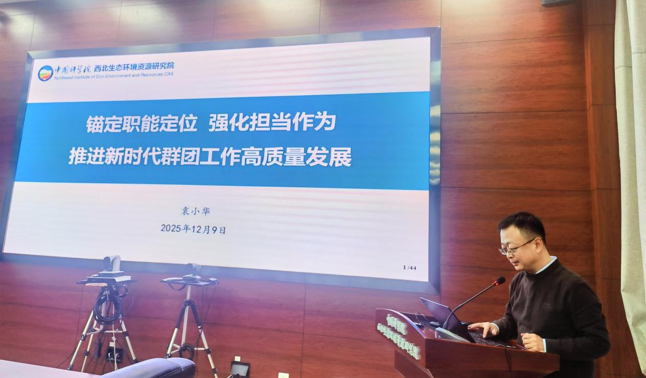 黨委書記張長春參加會議并作專題報告,領(lǐng)學(xué)了習(xí)近平總書記在黨的二十屆四中全會上的重要講話和全會精神,并結(jié)合個人學(xué)習(xí)思考,重點闡述了全會提出的“加快高水平科技自立自強,引領(lǐng)發(fā)展新質(zhì)生產(chǎn)力”戰(zhàn)略部署。他強調(diào),群團(tuán)組織負(fù)責(zé)人要立足服務(wù)科技創(chuàng)新中心職責(zé),從搭建創(chuàng)新交流平臺、強化青年人才培育、營造良好科研生態(tài)等關(guān)鍵維度發(fā)力,為搶占寒旱區(qū)生態(tài)環(huán)境資源工程領(lǐng)域科技制高點凝聚共識、匯聚力量。