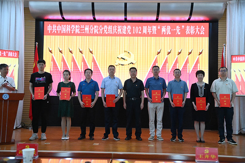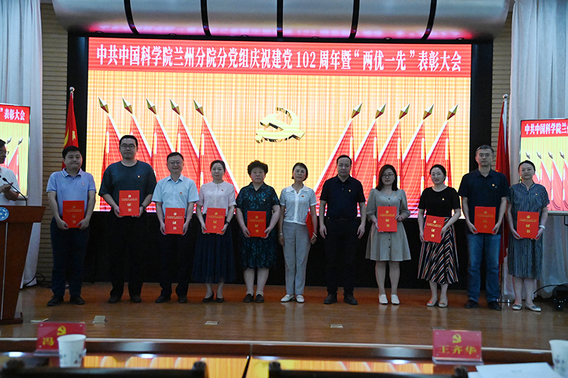 為慶祝中國共產(chǎn)黨成立102周年,深入開展學(xué)習(xí)貫徹習(xí)近平新時代中國特色社會主義思想主題教育,中共中國科學(xué)院蘭州分院分黨組、中共中國科學(xué)院蘭州分院系統(tǒng)單位委員會于6月26日召開慶祝中國共產(chǎn)黨成立102周年暨“兩優(yōu)一先”表彰大會。分黨組、系統(tǒng)單位黨委領(lǐng)導(dǎo)班子成員,蘭州、西寧地區(qū)院屬各單位黨委領(lǐng)導(dǎo)同志、黨辦主任,分院機(jī)關(guān)高級業(yè)務(wù)主管四級職員、各部門負(fù)責(zé)人、各黨支部(總支)書記以及受表彰的“兩優(yōu)一先”人員參加會議。會議由蘭州分院分黨組副書記、系統(tǒng)單位黨委副書記陳改學(xué)主持。