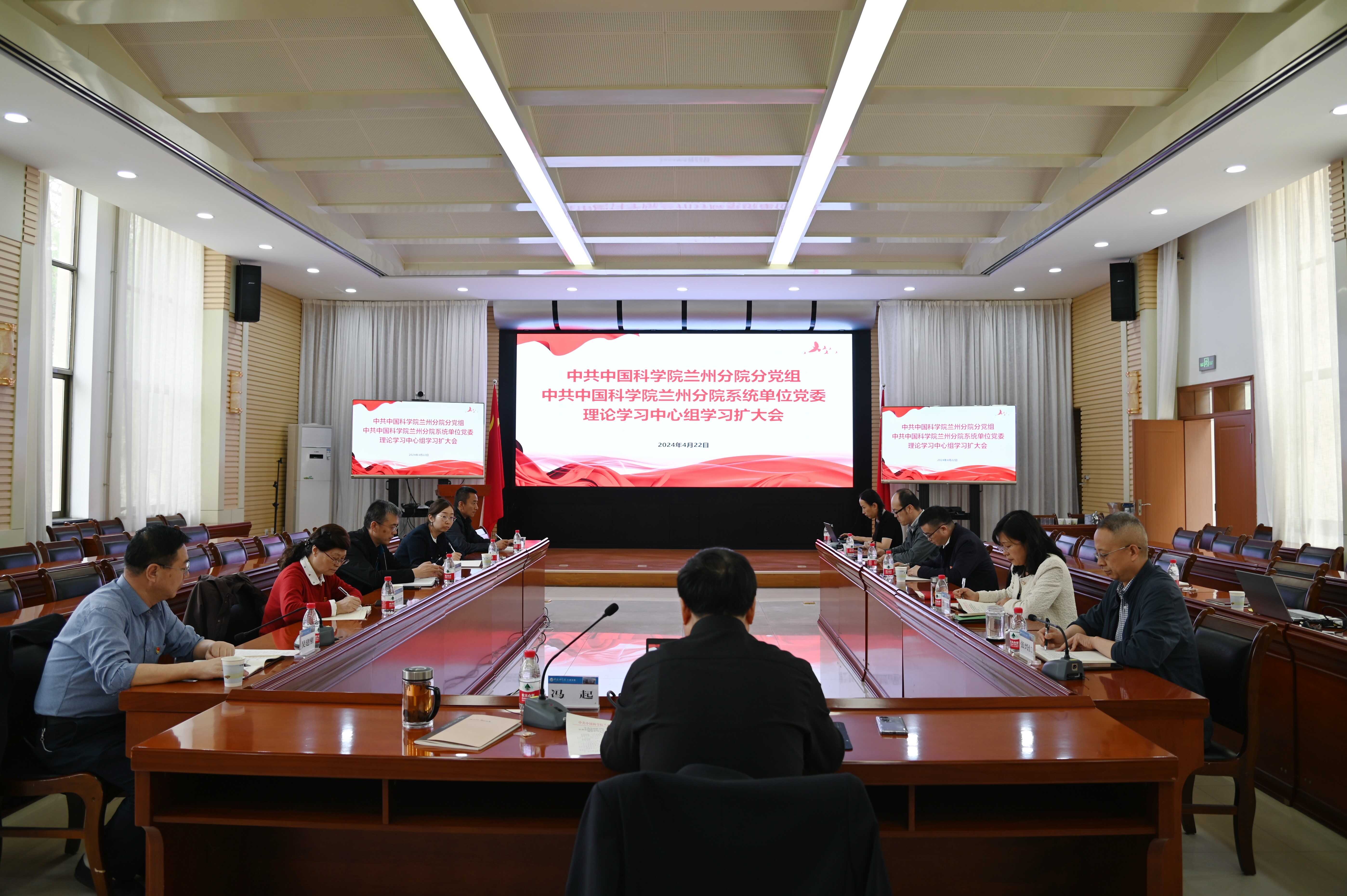 4月22日,中共中國科學(xué)院蘭州分院分黨組召開2024年第4次理論學(xué)習(xí)中心組學(xué)習(xí)擴大會議。會議由蘭州分院分黨組書記、院長馮起主持。分黨組領(lǐng)導(dǎo)班子成員,系統(tǒng)單位黨委委員,機關(guān)黨委委員、高級業(yè)務(wù)主管四級職員、各部門負責人、各黨支部(總支)書記參加會議。