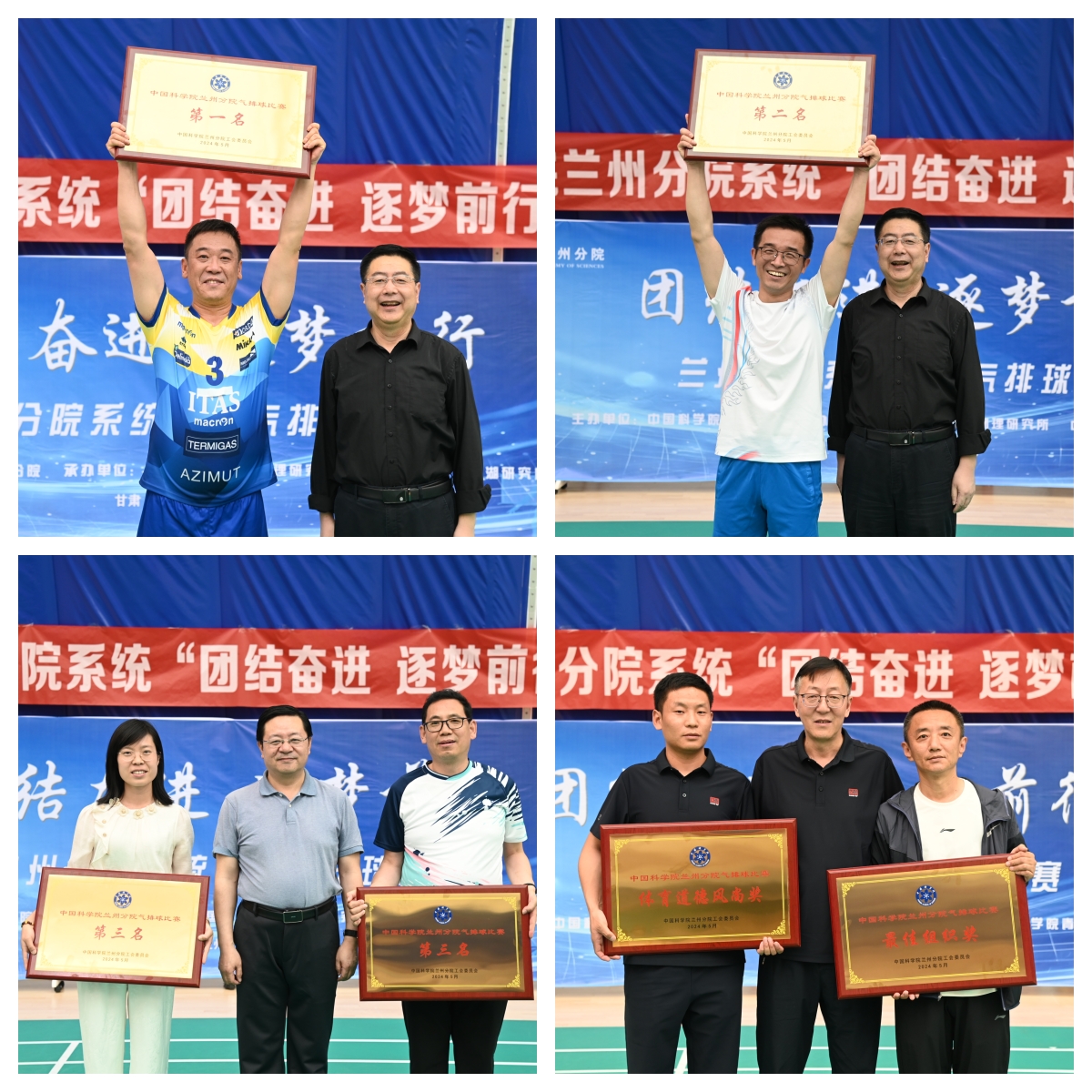 經(jīng)過激烈的角逐和比拼,最終近代物理研究所代表隊獲得一等獎,西北生態(tài)環(huán)境資源研究院代表隊獲得二等獎,蘭州化學(xué)物理研究所、青海鹽湖研究所代表隊獲得三等獎,蘭州分院機關(guān)代表隊獲得最佳組織獎,西北高原生物研究所代表隊獲得體育道德風(fēng)尚獎。