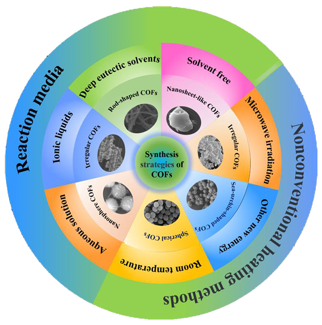 圖4 基于非傳統(tǒng)加熱方式和反應(yīng)介質(zhì)的COFs合成策略