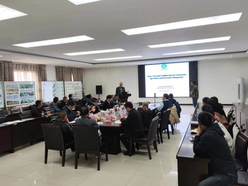 學(xué)術(shù)交流環(huán)節(jié),何志斌介紹了臨澤站發(fā)展歷史、研究方向、科研平臺(tái)與人才培養(yǎng)等情況,重點(diǎn)匯報(bào)了臨澤站在服務(wù)國(guó)家重大戰(zhàn)略和助力地方經(jīng)濟(jì)社會(huì)發(fā)展等方面取得的科研成果。Arash Malekian介紹了伊朗德黑蘭大學(xué)和研究團(tuán)隊(duì),并作了題為China - Iran Joint Collaboration for Sustainable Agriculture and Ecosystem Management的學(xué)術(shù)報(bào)告?!爸邪鸵两?jīng)濟(jì)走廊新墾綠洲地力與產(chǎn)能協(xié)同提升技術(shù)集成與示范”項(xiàng)目負(fù)責(zé)人、臨澤站劉冰研究員從新墾綠洲、沙地地力提升關(guān)鍵技術(shù)等6個(gè)方面匯報(bào)了項(xiàng)目在中國(guó)、伊朗和巴基斯坦已取得的科研進(jìn)展,并介紹了項(xiàng)目的國(guó)際合作情況。
