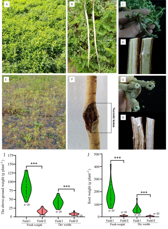 圖1:FieldⅠ和FieldⅡ中生長(zhǎng)的蒙古黃芪植物的表型和生物量。