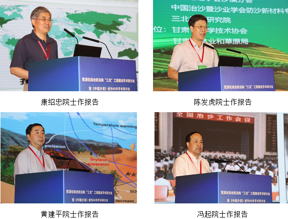 研討會以“荒漠化綜合防治和‘三北’工程建設(shè)”為主題,旨在深入學(xué)習(xí)貫徹落實習(xí)近平總書記關(guān)于加強荒漠化綜合防治和推進生態(tài)工程建設(shè)重要講話精神,推動山水林田湖草沙一體化保護和系統(tǒng)治理,總結(jié)和交流相關(guān)研究成果,促進人與自然和諧共生。大會邀請了丁一匯、姚檀棟、侯立安、鄭曉靜、康紹忠、陳發(fā)虎、黃建平、馮起、方小敏、朱教君等10位院士和王濤、李新榮、楊小平、董治寶、陳亞寧、鹿化煜、屈建軍、楊文斌等8位專家作主題報告,并組織了14個分論壇的專題報告。南志標(biāo)、賴遠(yuǎn)明、楊志峰院士參會??凳啦?、曹廣超、盧琦、李廣、勾曉華、楊興國分別主持大會主題報告。與會專家學(xué)者圍繞荒漠化綜合防治和“三北”工程建設(shè)的新理念、新技術(shù),深入探討了荒漠化地區(qū)氣候變化與生態(tài)系統(tǒng)響應(yīng)、荒漠生態(tài)修復(fù)與治理、全球氣候變化對西北暖濕化趨勢的影響等前沿問題。