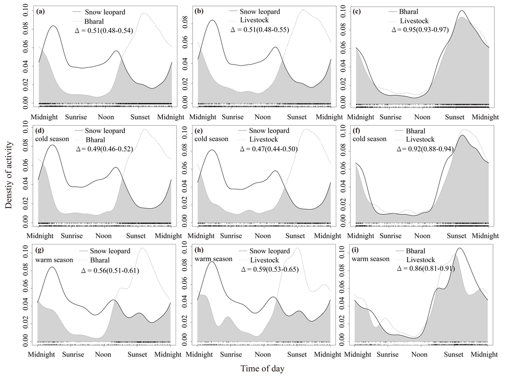 雪豹、巖羊和家畜的活動(dòng)時(shí)間重疊