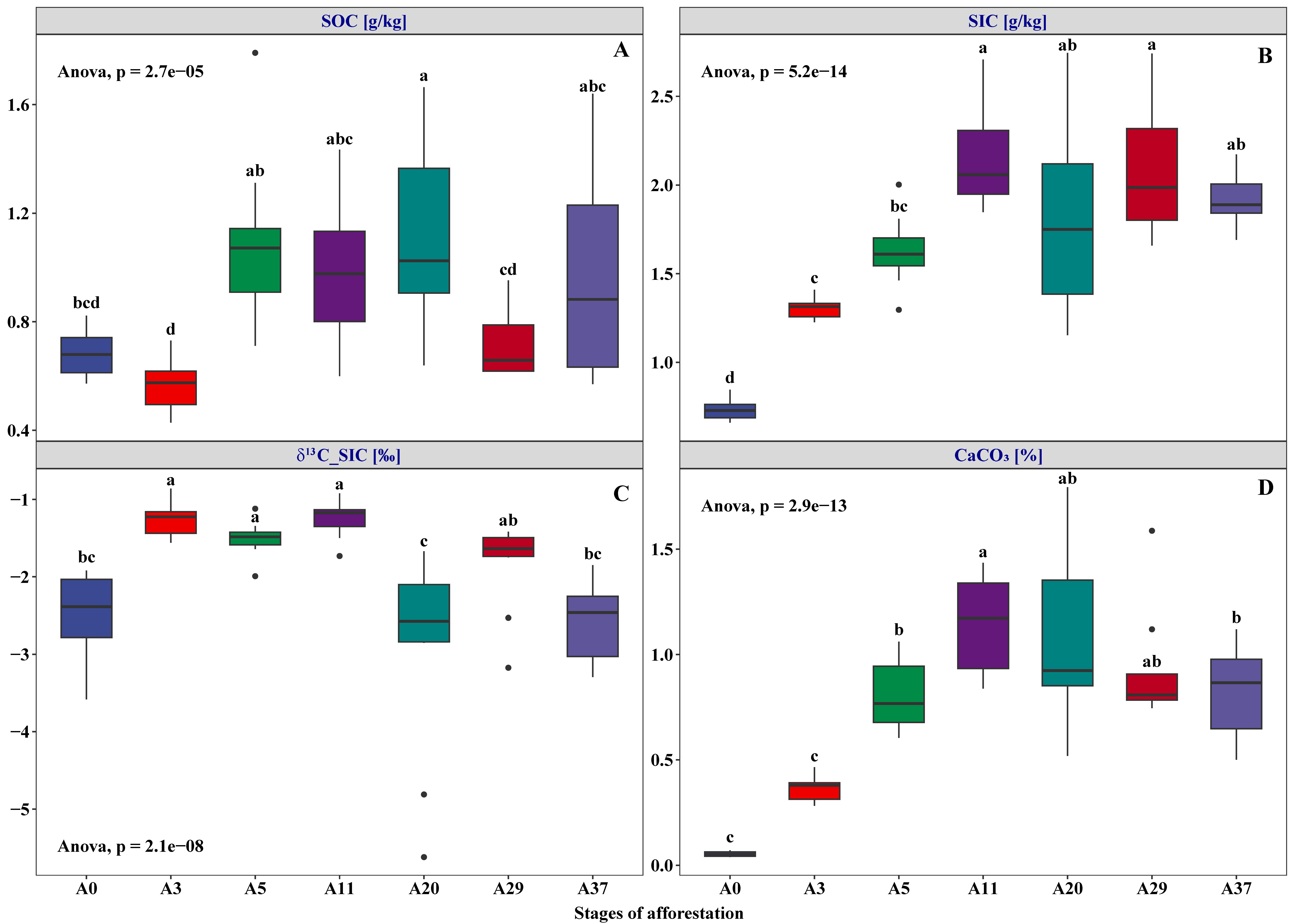 研究結(jié)果顯示,隨著飛播造林植被群落的不斷演替,飛播造林顯著改變了沙地土壤理化性質(zhì)和微生物群落結(jié)構(gòu),同時(shí)大量的鹽分和氮元素隨著掉落物和生物量進(jìn)入土壤,在荒漠區(qū)豐富的鈣離子和鎂離子膠結(jié)作用下,形成土壤團(tuán)聚體,從而起到固定土壤有機(jī)碳的作用。