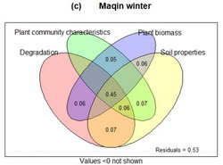 達(dá)日冬季草場(a)、瑪沁夏季草場(b)及瑪沁冬季草場(c)高寒草甸土壤微生物碳氮磷含量及其化學(xué)計(jì)量比的方差分解分析
