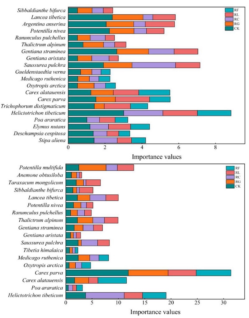 研究結(jié)果以?Effects of short-and long-term plant functional group loss on alpine meadow community structure and soil nutrients?和?Effects of short- and longterm plant functional group removal on alpine meadow community niche?為題分別發(fā)表在?Ecology and evolution(中國科學(xué)院二區(qū))和?Frontiers in Plant Science(中國科學(xué)院二區(qū))。西北高原所博士研究生魏晶晶為第1作者,周華坤研究員為通訊作者。該研究得到青藏高原地球系統(tǒng)、資源與環(huán)境國家重點實驗室開放課題(TPESER202209)、2020年森林草原生態(tài)保護與恢復(fù)第二批資金--青海祁連山國家公園祁連山國家公園青海區(qū)生物多樣性保護項目(QHTX-2021-009)的共同資助。