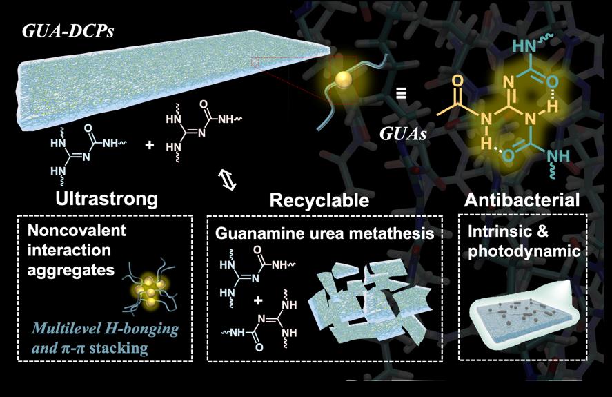 圖1. 動態(tài)胍脲結構和具有多重性質聚胍脲材料的示意圖