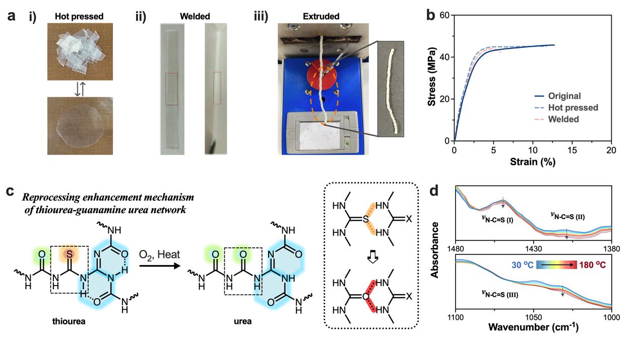 圖3. 胍硫脲雙解離網絡的多種加工方式以及加工前后力學性能比較