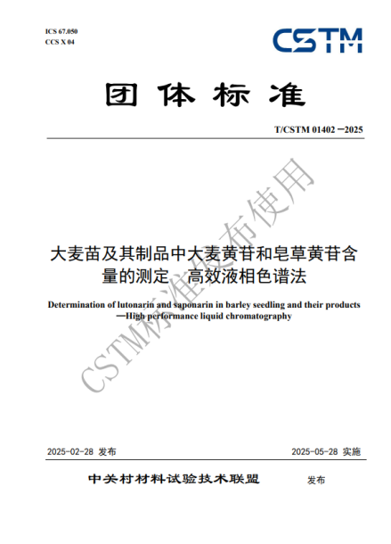 2025年2月28日,由中國科學(xué)院西北高原生物研究所、青海省藥品檢驗(yàn)檢測院、西寧海關(guān)技術(shù)中心和青海金麥杞生物科技有限公司聯(lián)合完成的中國材料與試驗(yàn)團(tuán)體標(biāo)準(zhǔn)委員會(huì)(CSTM)團(tuán)體標(biāo)準(zhǔn)《大麥苗及其制品中大麥黃苷和皂草黃苷含量的測定 高效液相色譜法》(T/CSTM 01402—2025)正式發(fā)布。該標(biāo)準(zhǔn)為基于大麥苗(青稞苗)的大健康產(chǎn)品的質(zhì)量控制和技術(shù)創(chuàng)新提供了科學(xué)依據(jù)和規(guī)范化指導(dǎo)。標(biāo)準(zhǔn)詳細(xì)規(guī)定了使用高效液相色譜法測定大麥苗及其制品中活性成分大麥黃苷和皂草黃苷含量的方法,包括樣品的前處理、色譜條件的優(yōu)化、校準(zhǔn)曲線的繪制、數(shù)據(jù)的處理、以及測量不確定度的評估等關(guān)鍵環(huán)節(jié)。標(biāo)準(zhǔn)還特別強(qiáng)調(diào)了在實(shí)際檢測中應(yīng)根據(jù)樣品的特性進(jìn)行個(gè)性化的調(diào)整和優(yōu)化,以確保檢測結(jié)果的準(zhǔn)確性和可靠性。此外,標(biāo)準(zhǔn)還提供了詳細(xì)的試驗(yàn)報(bào)告模板,包括識(shí)別樣品、實(shí)驗(yàn)室和試驗(yàn)日期所需的全部信息,以及引用標(biāo)準(zhǔn)、結(jié)果表示和異常現(xiàn)象記錄等內(nèi)容,為檢測結(jié)果的完整性和可追溯性提供了有力保障。