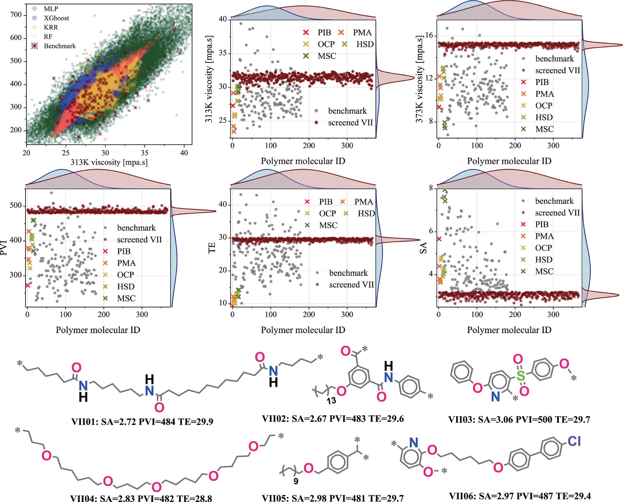 在軟凝聚態(tài)物質(如聚合物)領域,實驗數(shù)據(jù)質量參差導致數(shù)據(jù)量不足。粘度指數(shù)改進劑(VII)作為潤滑油核心添加劑,其性能依賴聚合物分子結構與溫度響應的復雜關系,但現(xiàn)有研究僅聚焦少數(shù)商用聚合物(如聚異丁烯),缺乏系統(tǒng)性數(shù)據(jù)支撐。盡管分子動力學(MD)可模擬聚合物溶液物性,但缺乏針對VII的高通量數(shù)據(jù)生成方法。此外,現(xiàn)有ML模型多為“黑箱”,難以揭示定量構效關系(QSPR),阻礙聚合物設計的理論指導。因此,亟需開發(fā)整合高通量計算、自動化特征工程與可解釋AI的框架,以突破數(shù)據(jù)稀缺限制,推動VII等復雜體系的理性設計。