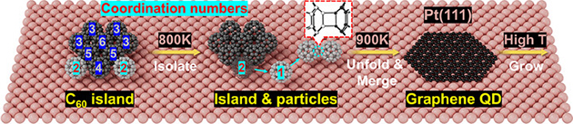 圖1. Pt(111)上C60島的熱演化示意圖。