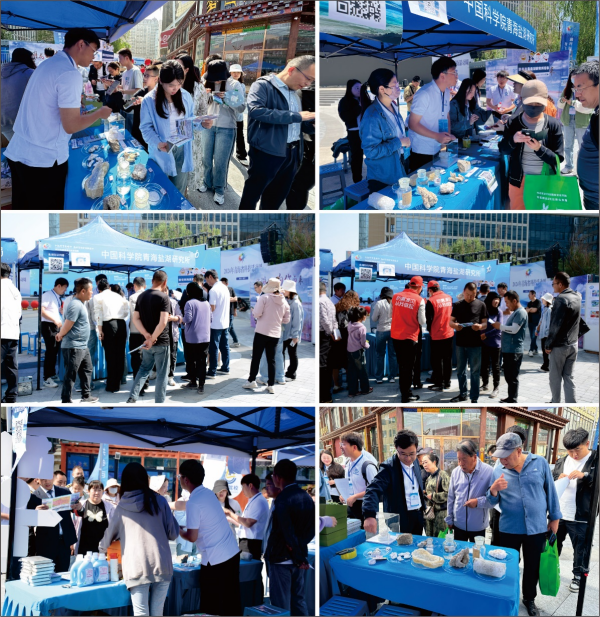 活動現(xiàn)場,28家單位聯(lián)動開展多種類、多元化科普宣傳內容,科技感十足的機器人、航天器模型和多種科研儀器吸引著眾多參展觀眾的目光。依托青海鹽湖所成立的青海省鹽湖地質與環(huán)境科研科普基地,通過詳細策劃和充分動員年輕科研骨干,精心準備了“青藏高原鹽湖演化、鹽湖成鹽成礦過程、微觀世界中的鹽湖、鹽湖資源高效利用、鹽湖旅游資源、鹽湖與人類生活和最美鹽湖人”等七個宣傳板塊,全面展示了鹽湖科普知識。展臺前觀眾絡繹不絕,成為本次活動人氣最旺的展臺之一。不同年齡段、不同行業(yè)的參觀群眾通過“看展板、聽講解、摸標本”了解和學習鹽湖科普知識,并積極參與“鹽湖知識答題”環(huán)節(jié)。兩個小時的活動中共有154人參與掃碼答題互動,觀眾們不僅獲得了小獎品,也在參觀答題過程中學習了鹽湖知識,感受了鹽湖的神奇與美麗。