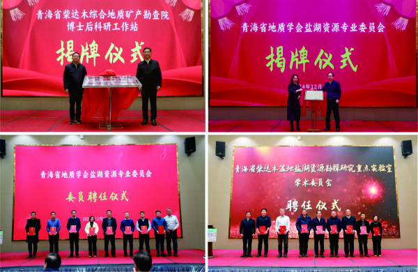 開幕式上,青海省自然資源廳黨組副書記、省地礦局黨委副書記、局長張啟元和中國科學(xué)院青海鹽湖研究所副所長(主持工作)鄭詩禮為“青海省柴達(dá)木綜合地質(zhì)礦產(chǎn)勘查院博士后科研工作站”揭牌。青海省地質(zhì)學(xué)會常務(wù)副理事長、省地礦局總工程師潘彤,青海鹽湖所黨委副書記、副所長、青海省地質(zhì)學(xué)會副理事長王建萍為“青海省地質(zhì)學(xué)會鹽湖資源專業(yè)委員會”揭牌。