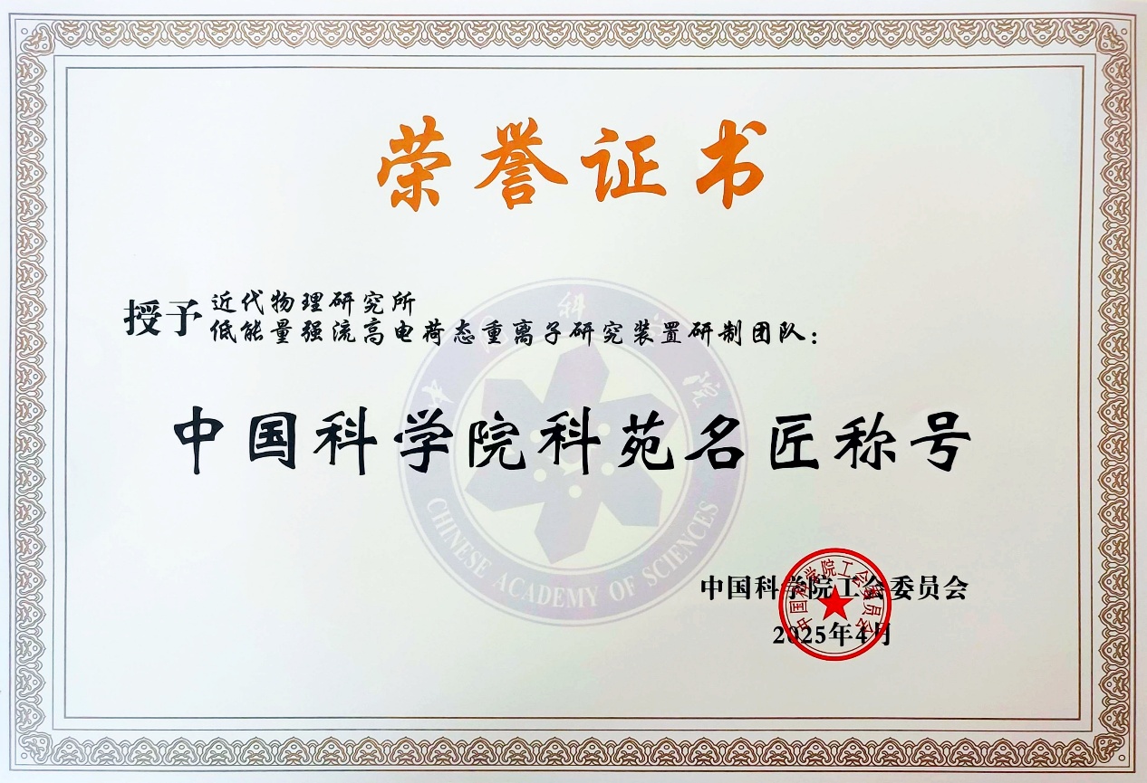 近代物理所低能量強(qiáng)流高電荷態(tài)重離子研究裝置研制團(tuán)隊(duì)榮獲中國科學(xué)院第六屆“科苑名匠”稱號
