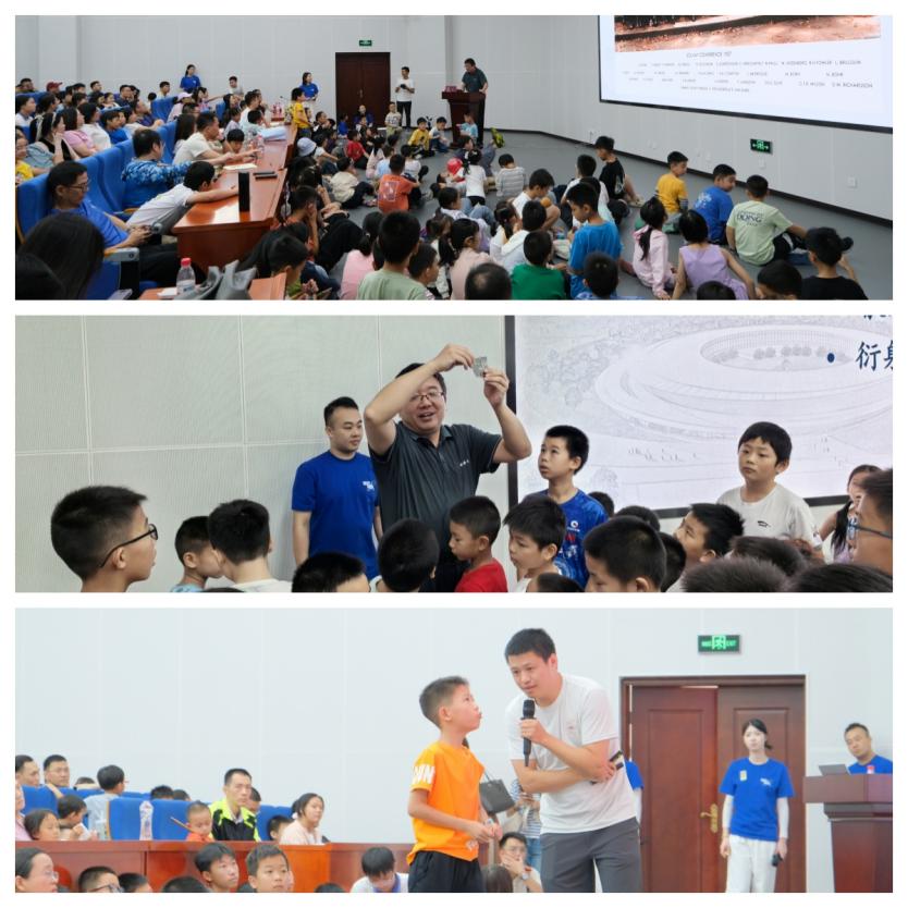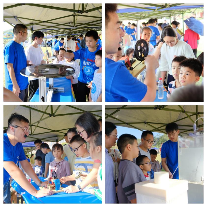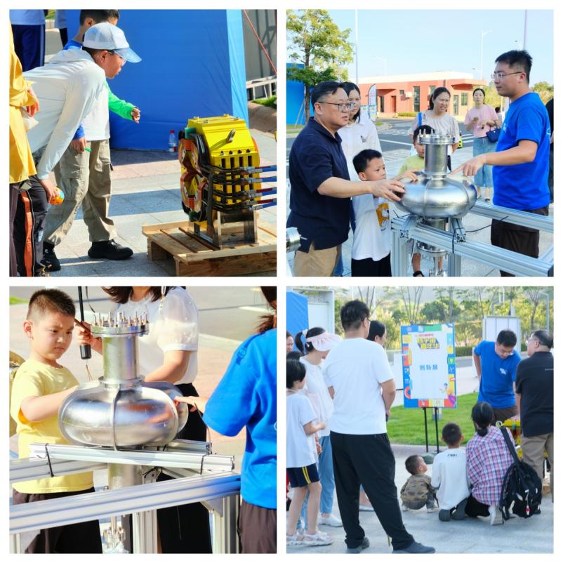 活動(dòng)形式豐富多樣,科普展廳設(shè)有強(qiáng)流重離子加速器裝置(HIAF)和加速器驅(qū)動(dòng)嬗變研究裝置(CiADS)的沙盤模型,科研人員為現(xiàn)場(chǎng)公眾詳細(xì)講解這些國(guó)家重大科技基礎(chǔ)設(shè)施的進(jìn)展。在創(chuàng)新展區(qū),展示了超緊湊旋轉(zhuǎn)束重離子治療系統(tǒng)和中國(guó)首臺(tái)碳離子治療系統(tǒng)等模型,四極磁鐵、超導(dǎo)腔等加速器實(shí)物設(shè)備也吸引了不少關(guān)注??破?qǐng)?bào)告環(huán)節(jié)中,中國(guó)科學(xué)技術(shù)大學(xué)的謝治助理研究員作了題為《追光逐日,迎接未來(lái)》的報(bào)告,介紹同步輻射領(lǐng)域的前沿知識(shí);中國(guó)科學(xué)院近代物理研究所的藍(lán)江山副研究員則以《探索微觀物質(zhì)世界的奧秘》為題,帶領(lǐng)聽眾探索粒子物理的奧秘,現(xiàn)場(chǎng)引發(fā)了熱烈提問(wèn)?;?dòng)體驗(yàn)是本次活動(dòng)的亮點(diǎn)。在實(shí)驗(yàn)秀中,展示了高溫超導(dǎo)磁懸浮和核孔膜超黑材料等實(shí)驗(yàn)演示;在“粒子特工訓(xùn)練基地”,孩子們通過(guò)游戲模擬重離子在加速器中的運(yùn)動(dòng),深入理解其工作原理,特邀惠州學(xué)院附屬學(xué)校學(xué)生擔(dān)任該項(xiàng)活動(dòng)特別講解員,通過(guò)。此外,創(chuàng)工坊里,孩子們?cè)诶蠋煹闹笇?dǎo)下參與科學(xué)制作,激發(fā)了他們對(duì)科學(xué)的熱情。