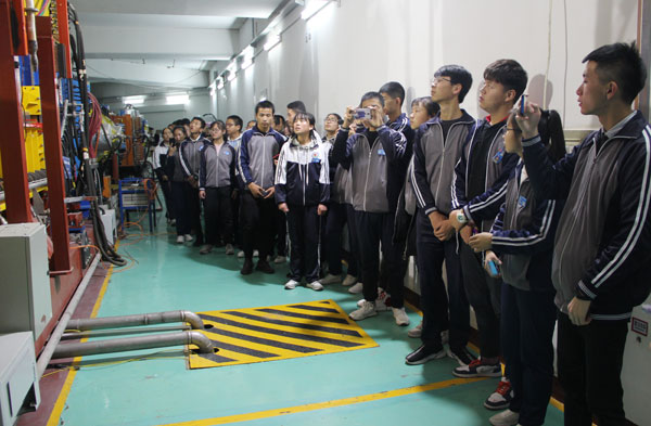 在中科院近代物理研究所,同學(xué)們參觀了蘭州重離子加速器國家實(shí)驗(yàn)室展廳,通過科研人員的講解了解到蘭州重離子加速器是我國規(guī)模最大、加速離子種類最多,能量最高的重離子研究裝置,主要技術(shù)指標(biāo)達(dá)到國際先進(jìn)水平,先后取得了以新核素合成、核質(zhì)量精確測量、重離子治癌研究等為代表的一批重要科研成果,使我國重離子物理及交叉學(xué)科研究進(jìn)入國際先進(jìn)行列。在科研人員的帶領(lǐng)下,同學(xué)們有幸親自走進(jìn)重離子加速器國家實(shí)驗(yàn)室,近距離對話科學(xué)大裝置,大家好奇的眼神,激動的心情,溢于言表。