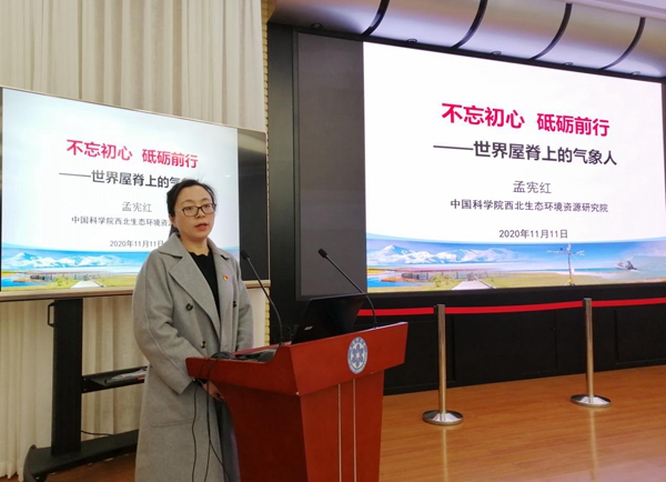 報告會特邀2019 年“中國科學(xué)院年度感動人物”入選者孟憲紅研究員作《不忘初心、砥礪前行——世界屋脊上的氣象人》主題報告。孟憲紅研究員從“懷揣夢想、千里求學(xué)”“情系高原、筑夢大氣”“潛心科研、銳意進(jìn)取”“不忘初心、”砥礪前行四個方面分享了她的求學(xué)、科研經(jīng)歷和感悟。從樸實無華的語言中令人看到她帶領(lǐng)團(tuán)隊始終秉承“特別能吃苦、特別能戰(zhàn)斗、特別能奉獻(xiàn)、特別能團(tuán)結(jié)、特別能忍耐”的“牦牛精神”,面對困難她披荊斬棘、堅守信念,把科學(xué)研究當(dāng)作自己的生命,用勤奮鋪就科研之路,用韌性點燃科研之旅。