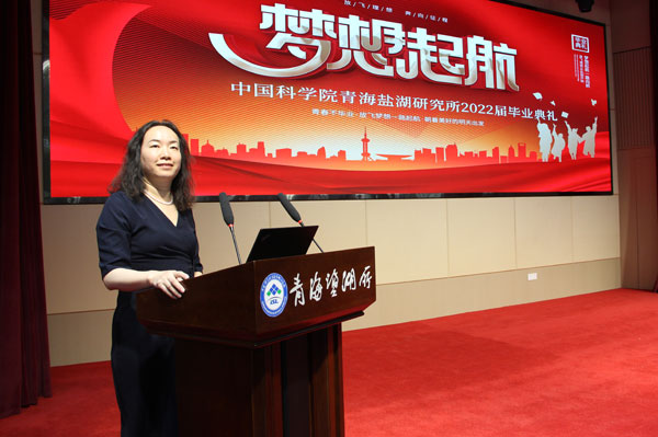 孫進(jìn)賀研究員作為導(dǎo)師代表發(fā)言,他向畢業(yè)生及導(dǎo)師們表示祝賀,祝愿大家在今后的道路上披荊斬棘、腳踏實(shí)地、砥礪前行。白露同學(xué)代表畢業(yè)生發(fā)言,表達(dá)了對(duì)國(guó)科大、對(duì)青海鹽湖所、對(duì)導(dǎo)師的感激與不舍,表示將牢記“鹽湖精神”,在今后的工作中努力做到艱苦奮斗、無(wú)私奉獻(xiàn)、團(tuán)結(jié)拼搏、開拓創(chuàng)新,把“鹽湖精神發(fā)”揚(yáng)光大,并祝愿青海鹽湖所越辦越好,再創(chuàng)佳績(jī)。