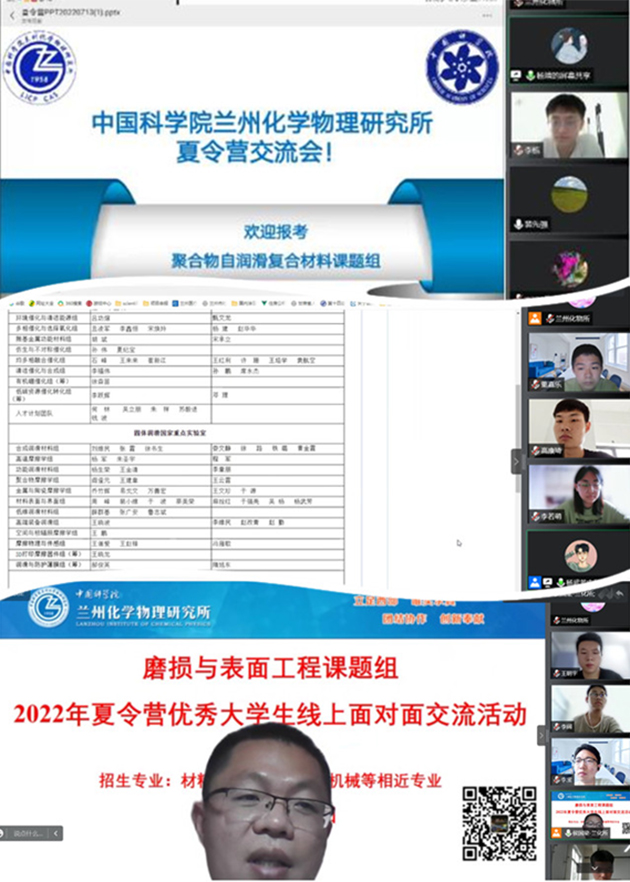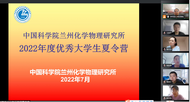 7月10至15日,中國(guó)科學(xué)院蘭州化學(xué)物理研究所舉辦了2022年“蘭化行,科研情”優(yōu)秀大學(xué)生線上夏令營(yíng)。本次夏令營(yíng)與中科院蘭州教育基地“我的科學(xué)夢(mèng)”優(yōu)秀大學(xué)生暑期學(xué)校同期舉行,來(lái)自吉林大學(xué)、青海大學(xué)、山東師范大學(xué)等高校的70名優(yōu)秀大學(xué)生參加了夏令營(yíng)。結(jié)合疫情防控要求,夏令營(yíng)以線上形式舉行。