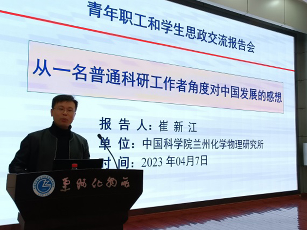 為深入貫徹落實(shí)習(xí)近平新時(shí)代中國特色社會主義思想和黨的二十大精神,進(jìn)一步加強(qiáng)青年職工和學(xué)生思想政治教育,4月7日,中國科學(xué)院蘭州化學(xué)物理研究所舉辦了青年職工和學(xué)生思想政治教育輔導(dǎo)報(bào)告會,邀請研究所兩位青年科研骨干作報(bào)告,青年職工和學(xué)生360余人參加報(bào)告會。