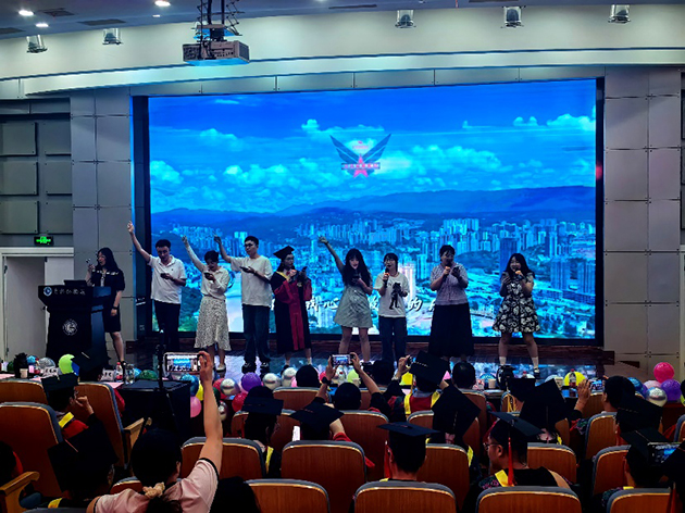 學生代表演唱了歌曲“和你一樣”“You Raise Me Up”?“我相信”,為畢業(yè)生送上祝福。